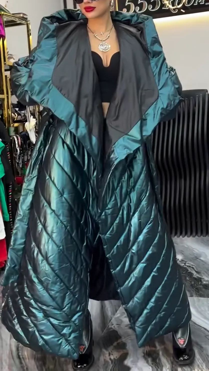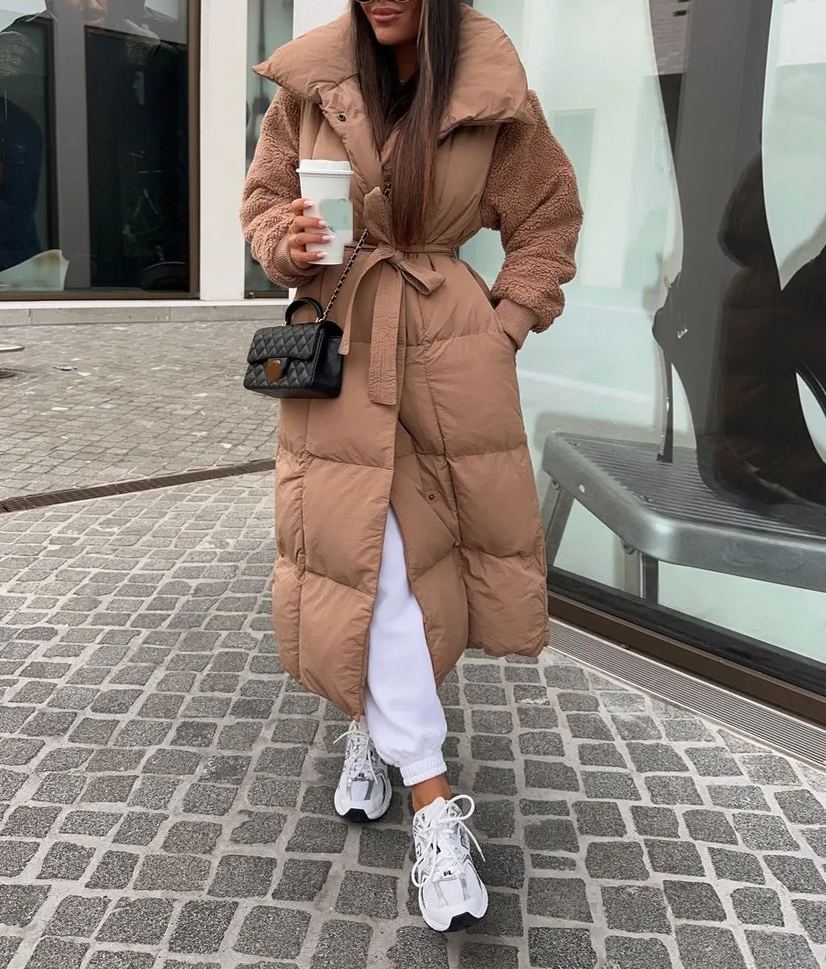 Abrigo acolchado de plumón de pato de lujo con cuello de piel sintética