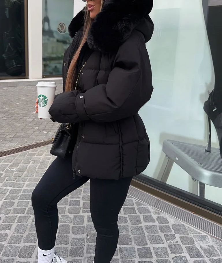 Lujosa chaqueta acolchada con capucha de piel sintética