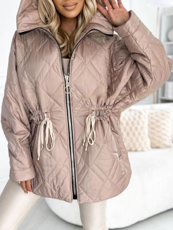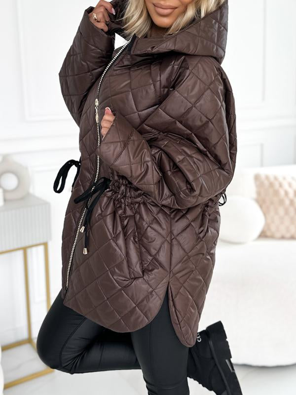 Chaqueta acolchada con capucha y cordón de diseño informal Cocoa Elegance